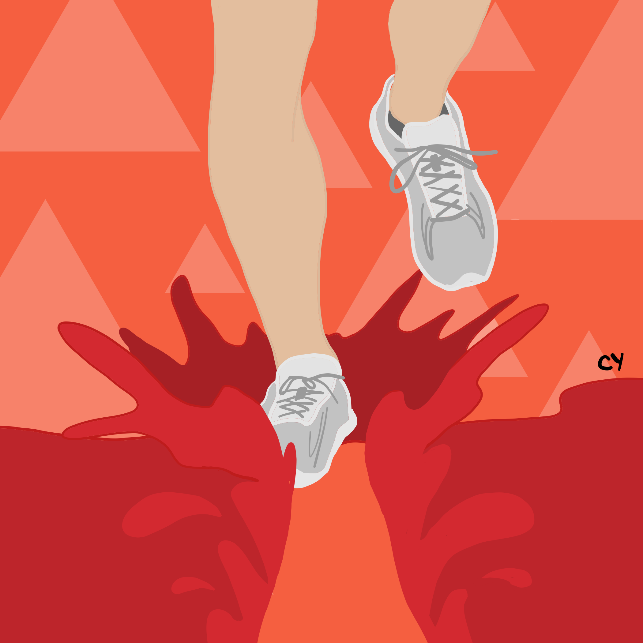 I love feeling the slap of my feet on the pavement. The first few minutes of a run are always my favorite. I’m full of energy, feeling like I can run forever. I watch as the cracks in the sidewalk go by underneath me, rhythmically. My formerly white shoes reflect the sun back at my face as they bounce up and down.