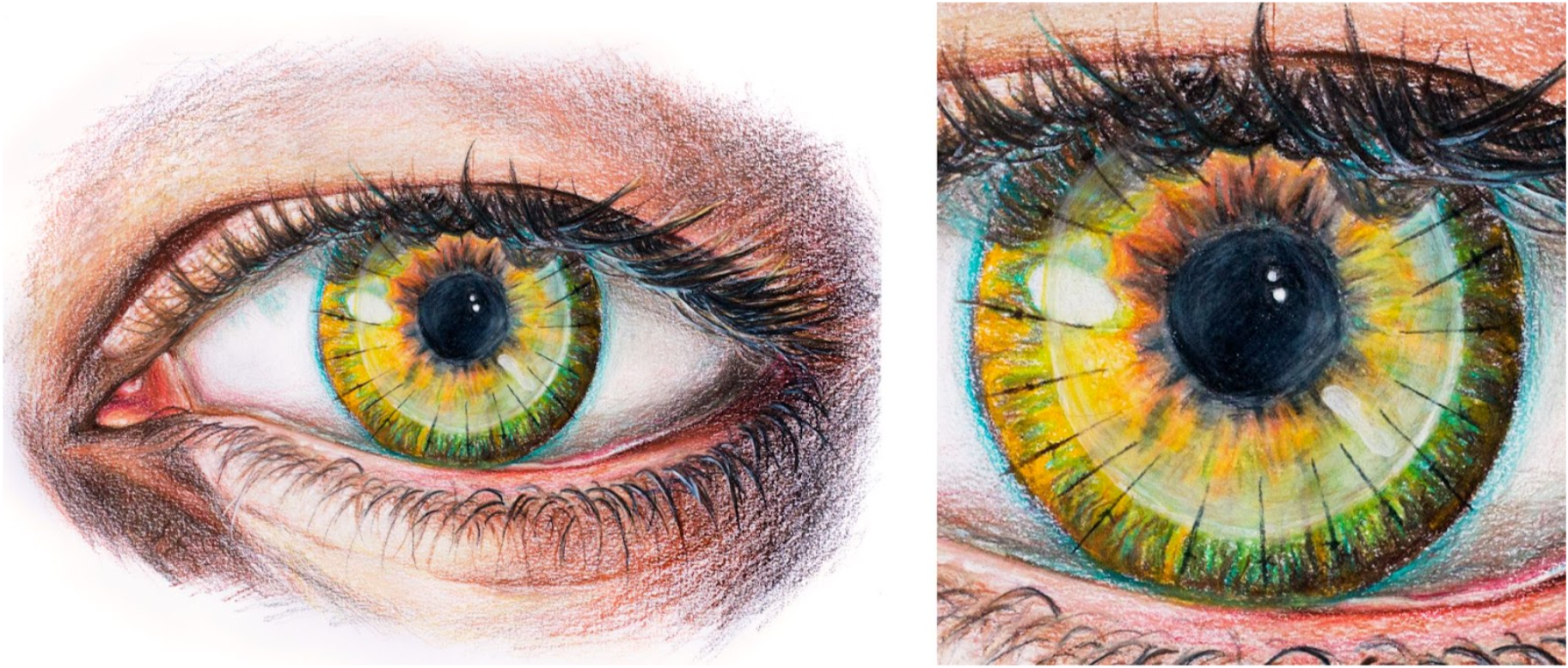 One of the surgeries that first heightened my interest in ophthalmology was the cornea transplant. Observing through the microscope, I was astonished by the surgeon’s deft movements creating tiny sutures along the rim of the transplant. He was performing what is called a “penetrating keratoplasty (PK)”, where donor cornea tissue is used to replace a patient’s damaged cornea. It can be used to treat conditions such as keratoconus or corneal perforation. After meeting patients for whom corneal transplantation had been life-changing, I was further amazed by this procedure and inspired to pursue a career in ophthalmology. During an ophthalmology conference’s wet lab, I had the opportunity to practice performing “Descemet’s membrane endothelial keratoplasty (DMEK)”, a partial thickness cornea transplant procedure where only the inner endothelium and Descemet’s membrane are replaced. While I’m not trained to operate in the OR yet, creating this drawing of a cornea transplant (PK) is, of sorts, a means for me to simulate trying my own hand at ophthalmology’s microsurgeries, and a cheers to the beginnings of my journey in the field!