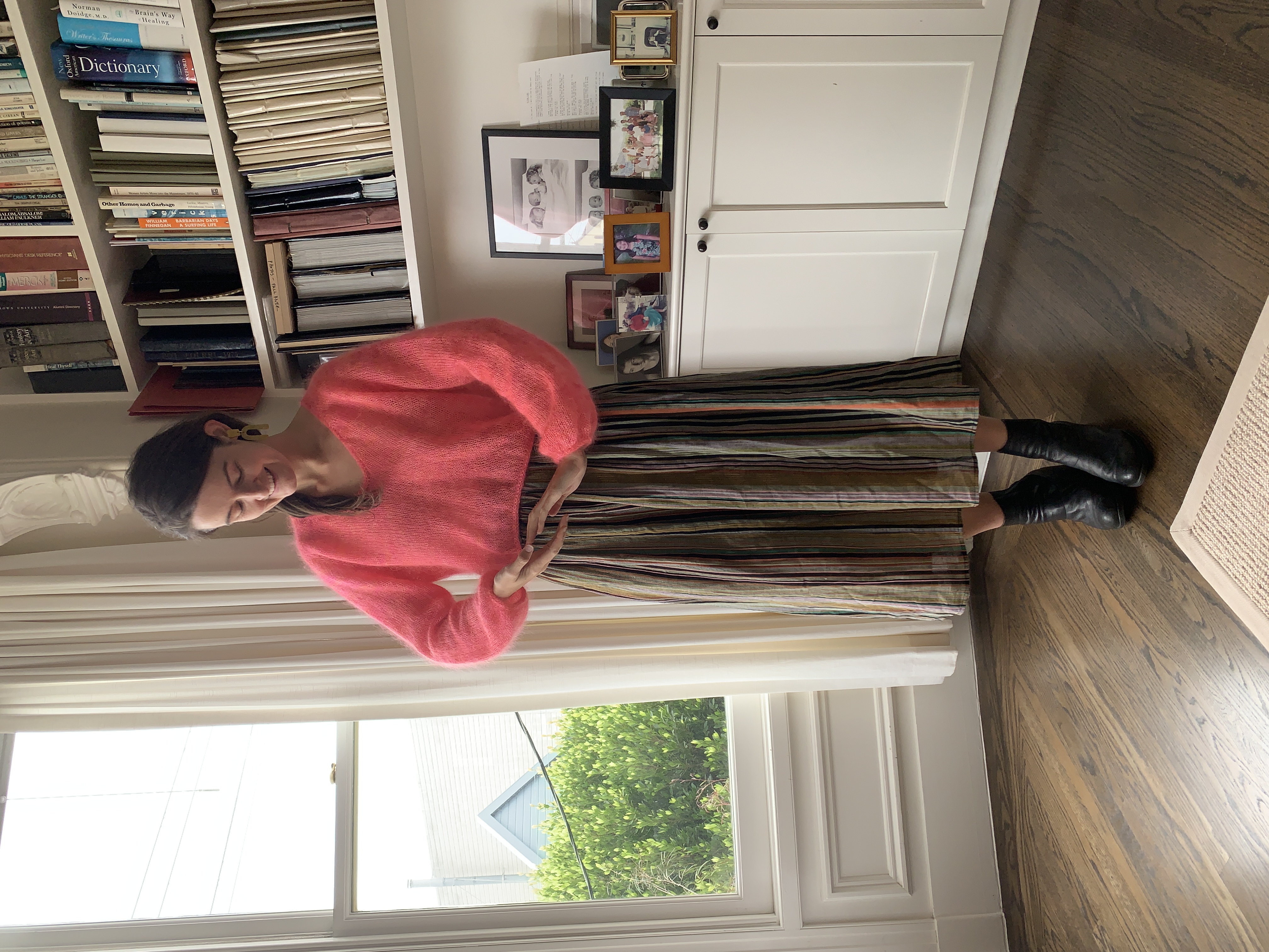 Each time I cast on a sweater or finished sewing a dress, my dad would listen patiently as I talked about the stitches and shapes. He was especially enthusiastic about my more original designs. I visited him in the hospital wearing a yellow dress whose pattern I extrapolated from a blouse. At his bedside in the ICU, I knit a hat with colorwork depicting the Golden Gate Bridge. When he passed away last September, I had several projects that were works-in-progress. Now those garments are finished, and I like to think he was able to imagine the final products.