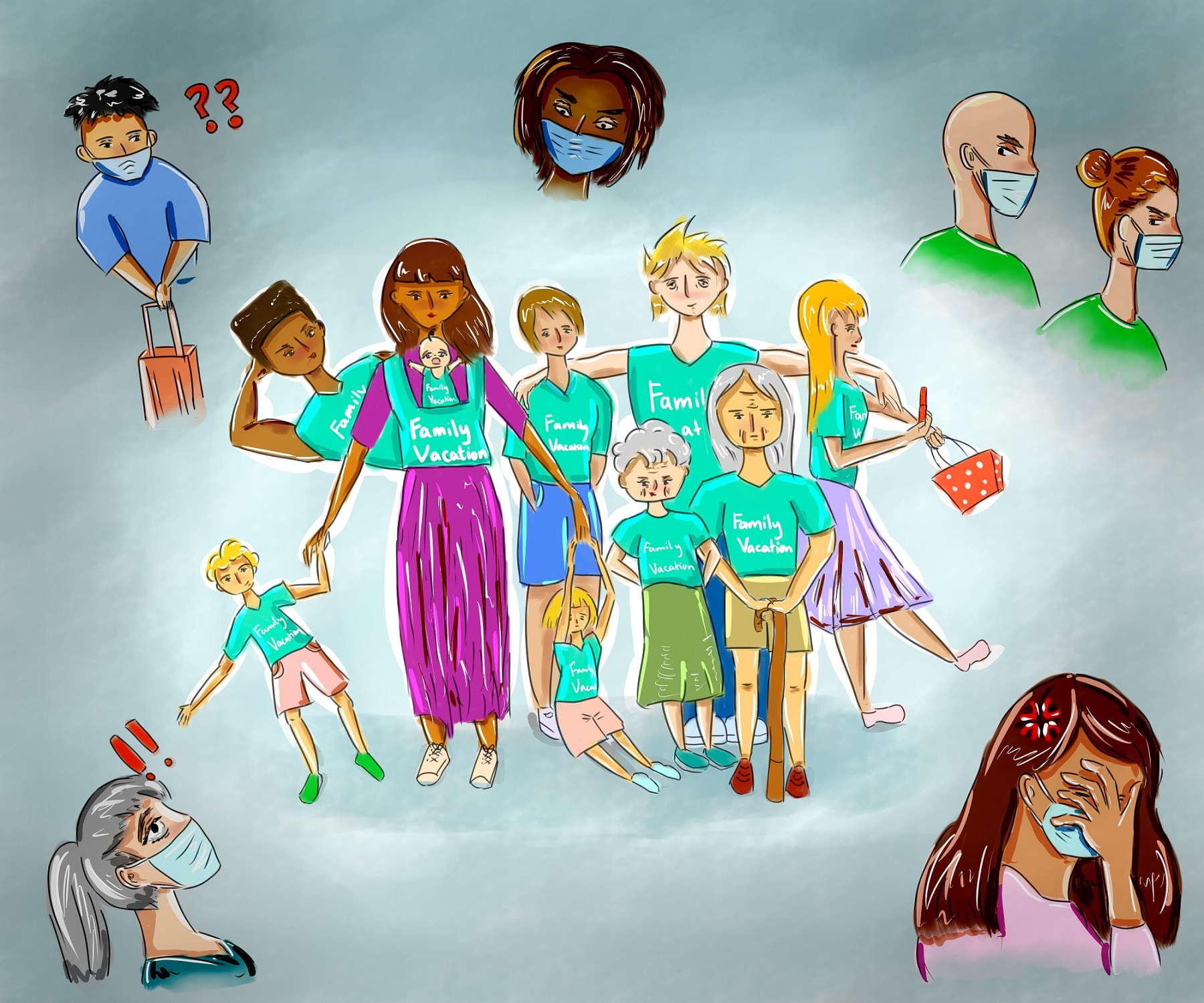 The family of 10 that sat across from me in the Houston airport wore matching turquoise t-shirts with “FAMILY VACATION” emblazoned across the chest. That was the first thing that I noticed. The second: that none of them were wearing masks.